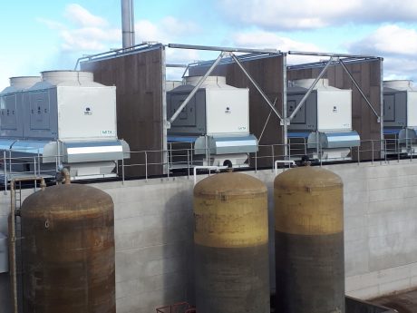 MITA Cooling Technologies ha fornito quattro torri di raffreddamento a circuito aperto del modello PME 7204 E K19 Super Silent + WA + C. Questa versione “Super Silent” delle torri di raffreddamento PME-E consente di rispettare le esigenze di bassi livelli sonori del cliente. Le torri di raffreddamento erano progettate per ridurre il rumore sia relativo al gruppo motoventilante che all’acqua che cadeva in vasca: sono state quindi adottate soluzioni come motori a 16 poli, forme speciali delle pale, tappettini fono-assorbenti in vasca e silenziatori sulle prese d’aria.
